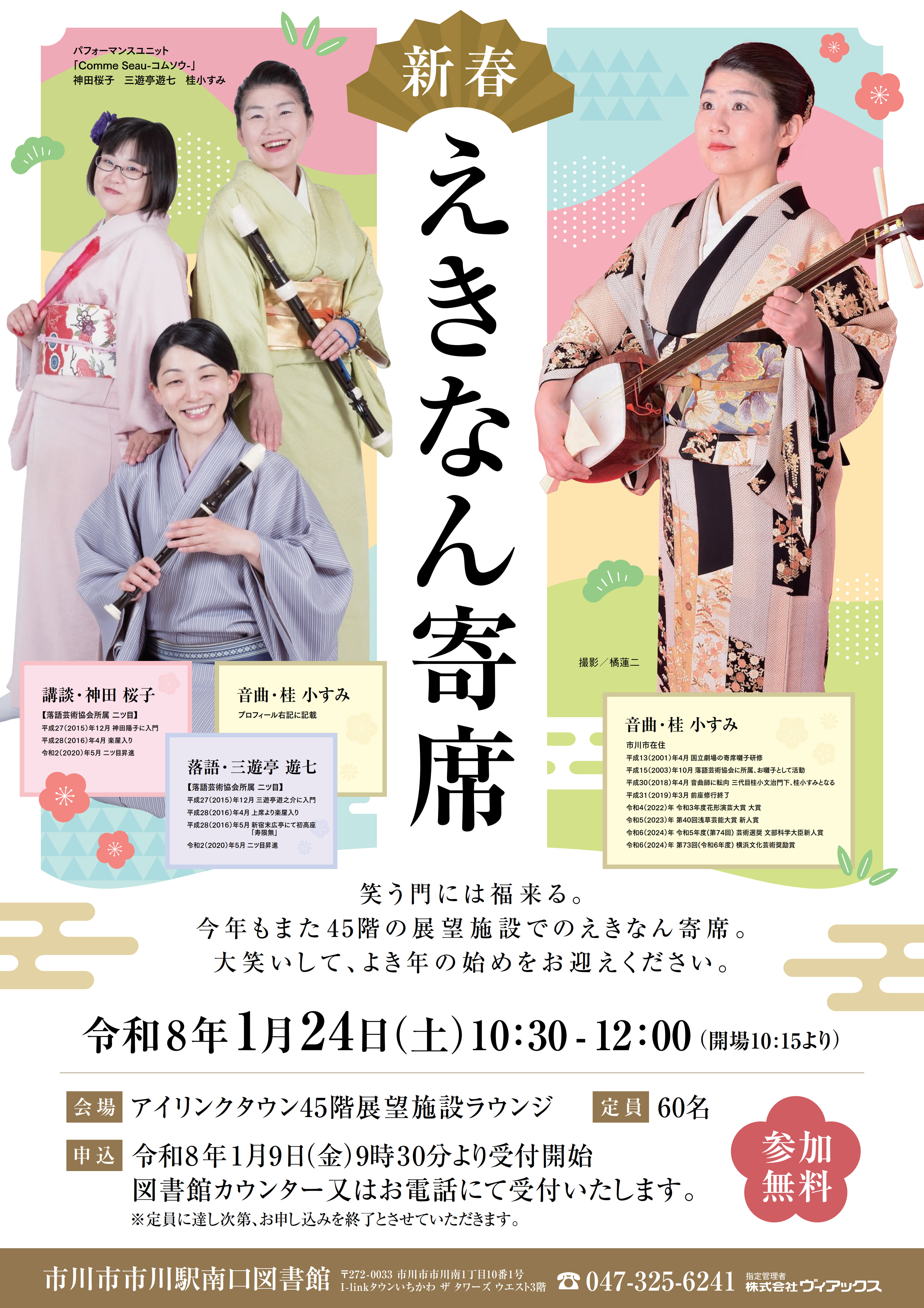 市川駅南口図書館カウンターまたはお電話にてお申し込みください。